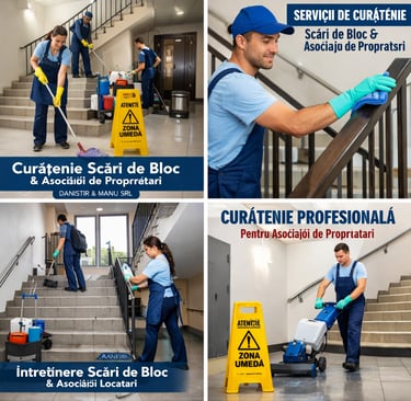DANISTIR & MANU SRL este o firmă specializată în servicii de curățenie profesională pentru scări de bloc, asociații de proprietari și asociații de locatari. Oferim soluții de întreținere adaptate fiecărui imobil, cu accent pe igienă, ordine și respectarea programului stabilit.