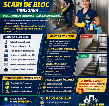 👉 Dani Stir & Manu îți oferă soluția completă pentru curățenia profesională a scărilor de bloc!